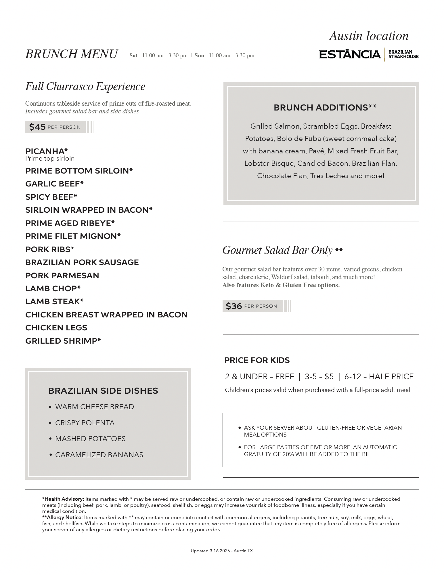 Menu List Austin